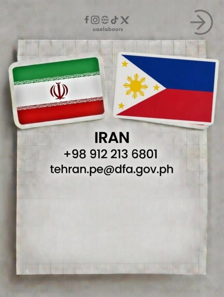 Para sa ating mga kababayan sa Iran, narito ang mga mahahalagang contact number na dapat ninyong i-save sa inyong mga telepono para sa seguridad at pangangailangan.