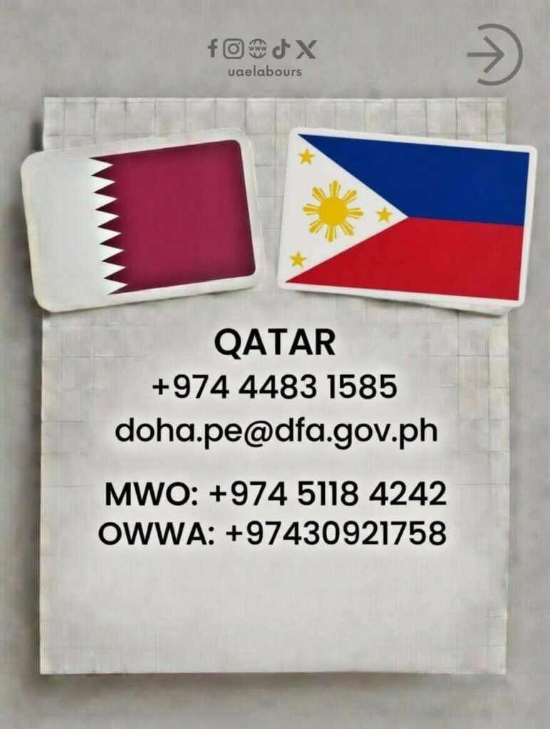 Narito ang mga mahahalagang hotline sa Qatar na dapat malaman ng mga Overseas Filipino Workers (OFWs) para sa iba’t ibang uri ng emergency at pangangailangan. Siguraduhing i-save ang mga numerong ito sa iyong telepono.