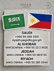 Para sa ating mga kababayan sa Saudi Arabia, napakahalagang i-save ang mga opisyal na contact number na ito. Dahil sa laki ng bansa, tandaan ang…